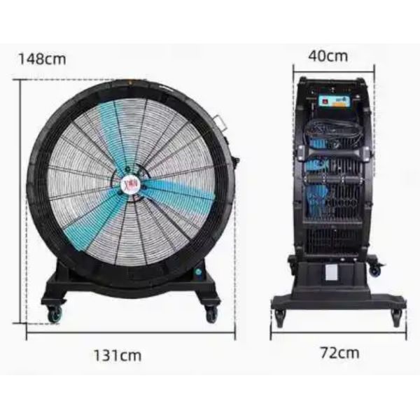 Step up to the next level of industrial cooling with this advanced mobile fan. Unlike traditional fans, this unit delivers a super large air volume capable of reaching over 30 meters. Its four robust wheels ensure easy mobility, while its efficient design consumes a mere 0.5kW. The PMSM motor and VFD stepless speed control provide unparalleled operational flexibility. Built to last, its IP55 rating guarantees waterproof and dustproof performance.